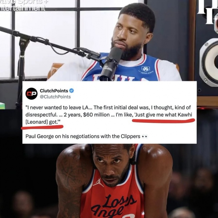此前,莱昂纳德与快船签下了一份3年1.5亿美元的合约。据报道,乔治希望获得同等待遇,但最终他选择了以4年2.12亿美元加盟76人。