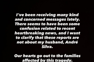 安德烈-席尔瓦妻子:“我最近收到了许多善意和关切的留言。似乎有些关于最近令人心碎的消息的混淆,我想澄清这些报道与我的丈夫安德烈-席尔瓦无关。我们对受这场悲剧影响的家庭表示深切同情。在这个无比艰难的时刻,我们挂念着他们。”